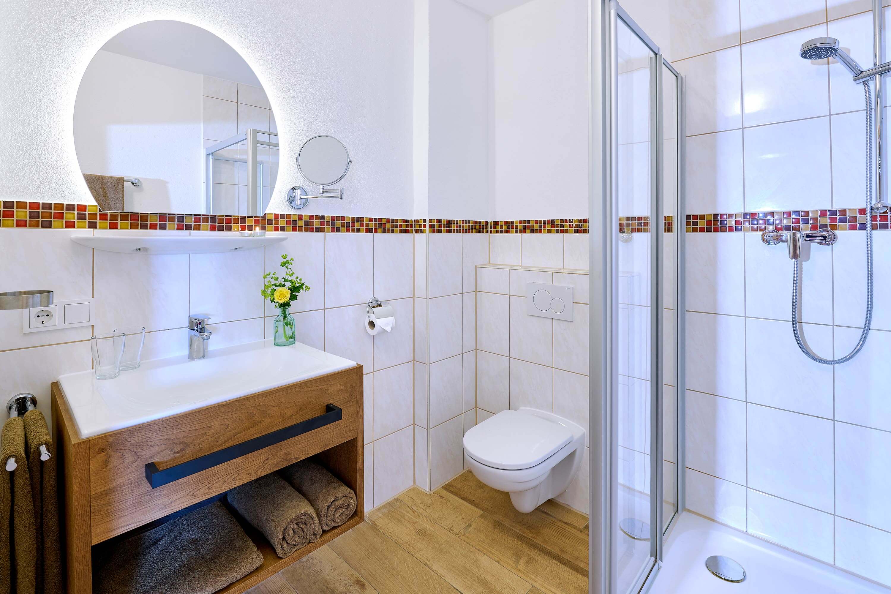 - 1 Badezimmer mit Dusche, WC und Föhn