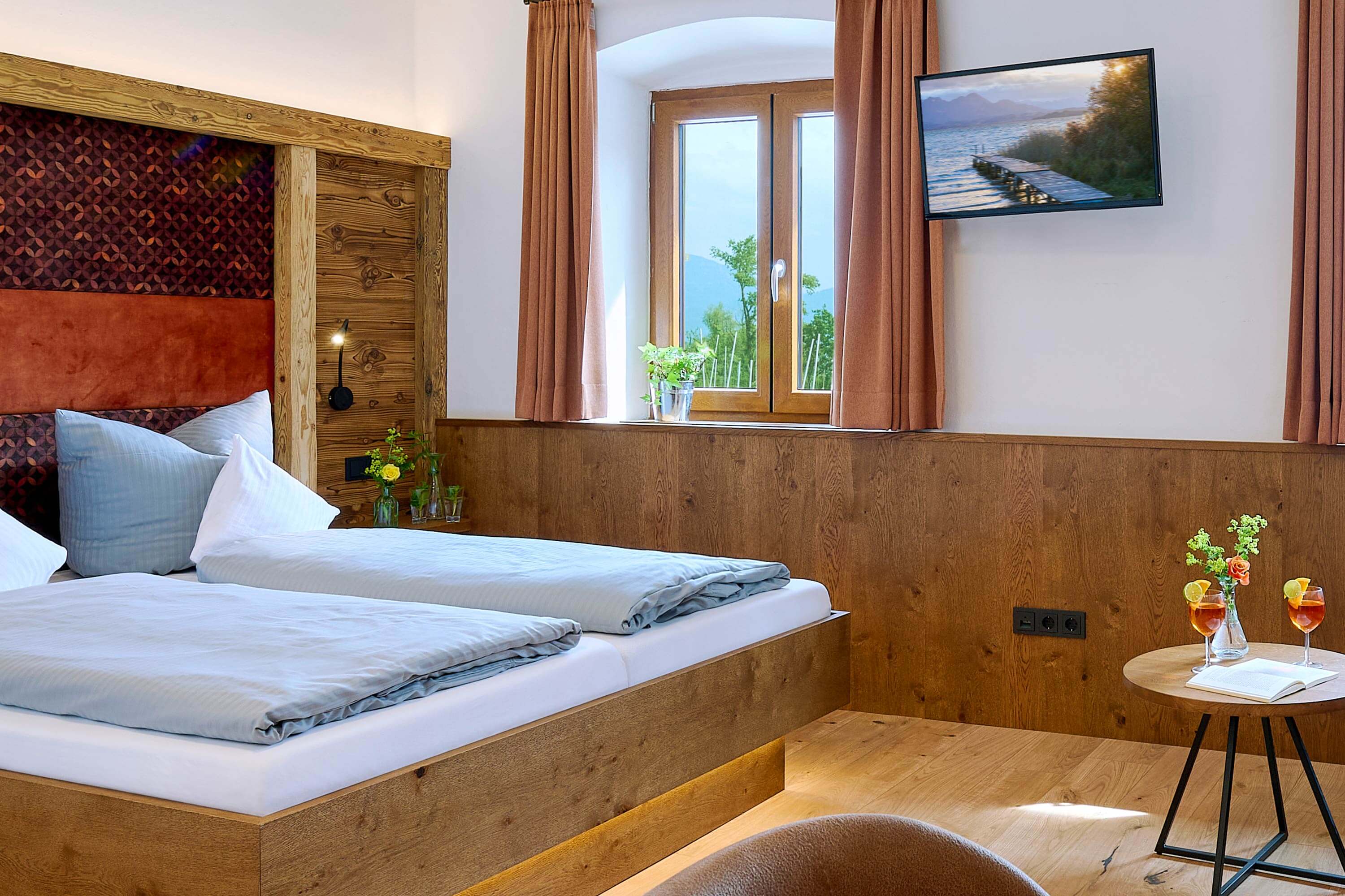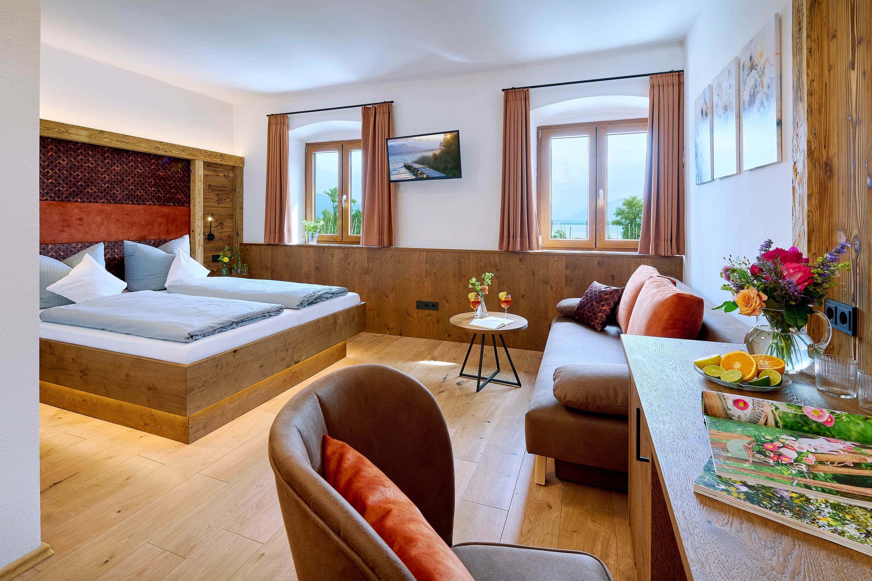 Lichtdurchflutet und freundlich empfängt das Gästezimmer Nummer 3 mit Frühstück die Feriengäste auf dem Urlaubshof Kirchmaier am Chiemsee. Ein schöner Ort für bis zu 3 Personen (ab Anreisen 07. Juni 2025), um sich gemütlich nach einem ereignisreichen Urlaubstag rund um das "Bayerische Meer" in Ruhe zurückzuziehen. Das Gästezimmer 3 bietet alles, was den nötigen Komfort für eine erholsame Übernachtung braucht. Ein bequemes Doppelbett sowie ein praktisches Schlafsofa stehen frisch bezogen bereit und das Badezimmer bietet mit Dusche, Waschbecken und WC einen Ort zum Frischmachen.