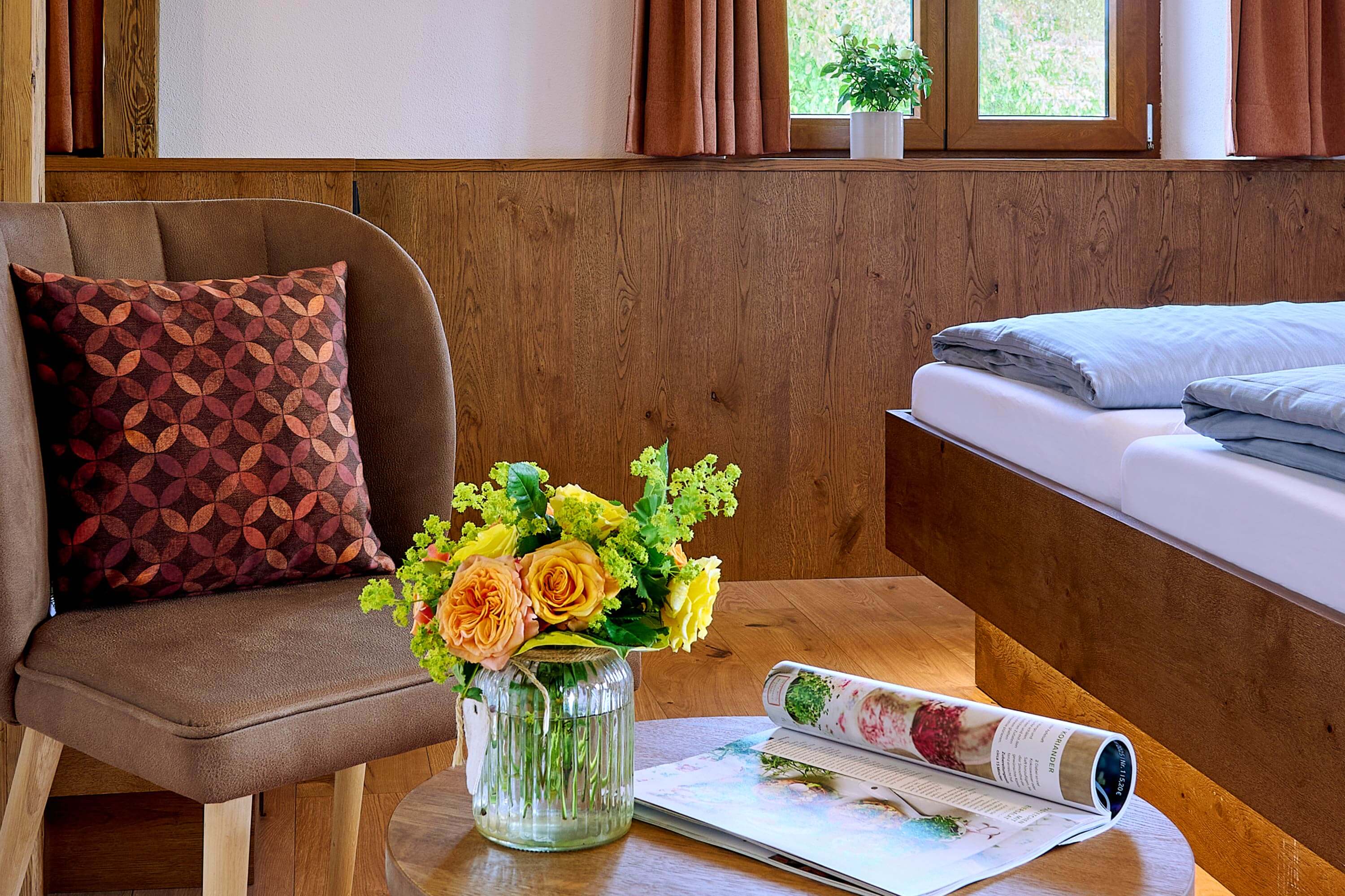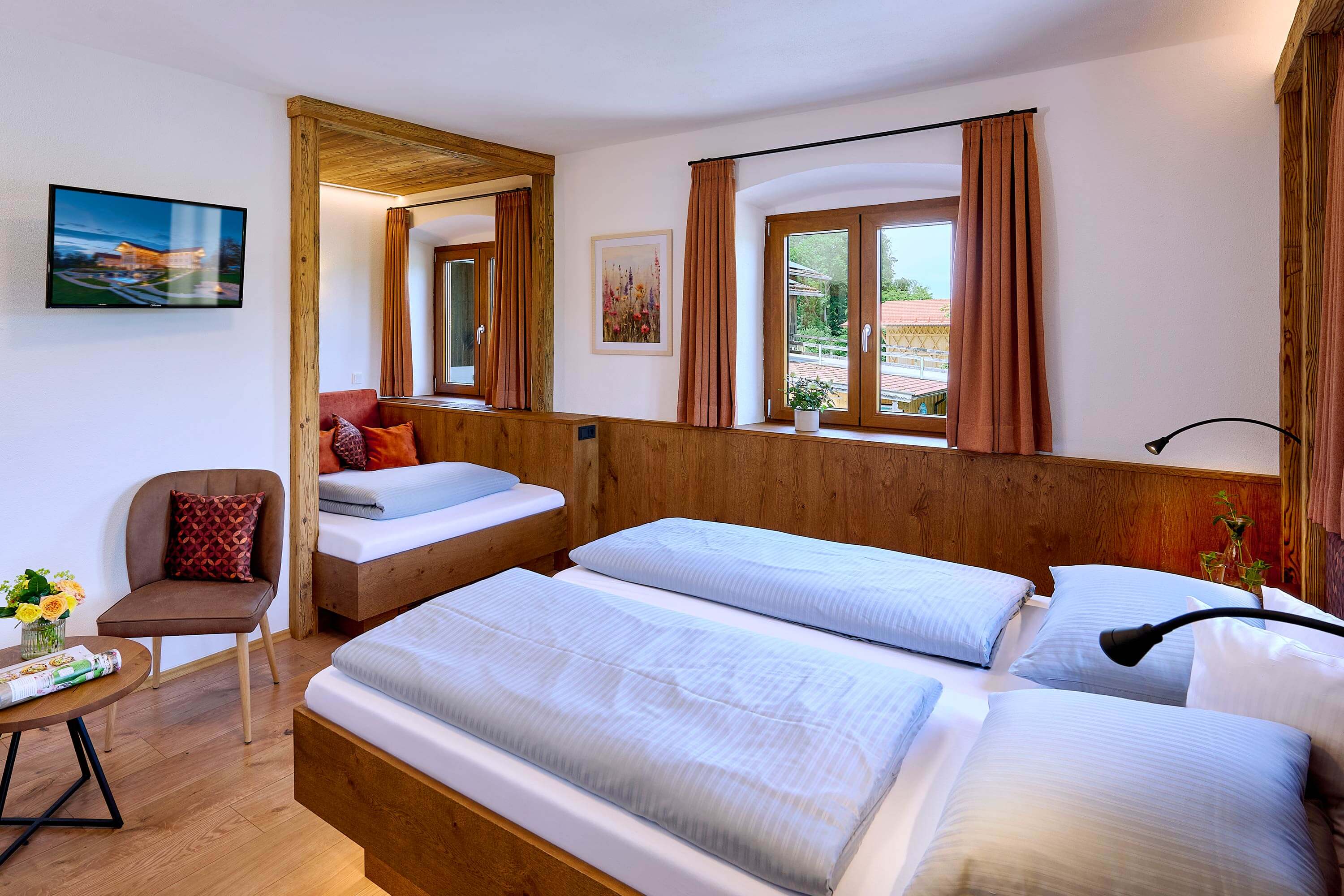 Im Gästezimmer 5 auf dem Urlaubshof Kirchmaier am Chiemsee kommt Ferienlaune auf. Das freundlich eingerichtete Gästezimmer bietet ausreichend Platz für 2 Erwachsene mit einem Kind und ist besonders für Paare, Kurzurlauber und Erholungssuchende geeignet. Die Übernachtung beinhaltet ein genussvolles Frühstück am Morgen. Die Besonderheit des Gästezimmers ist die gemütliche Kuschelecke und der eigene, möblierte Balkon. Und auch sonst bietet das Gästezimmer alles, was es für eine entspannte Übernachtung braucht. Ein bequemes Doppelbett ist fertig für die Urlaubsgäste bezogen- Ein Badezimmer mit Dusche und WC gehört zum Zimmer.